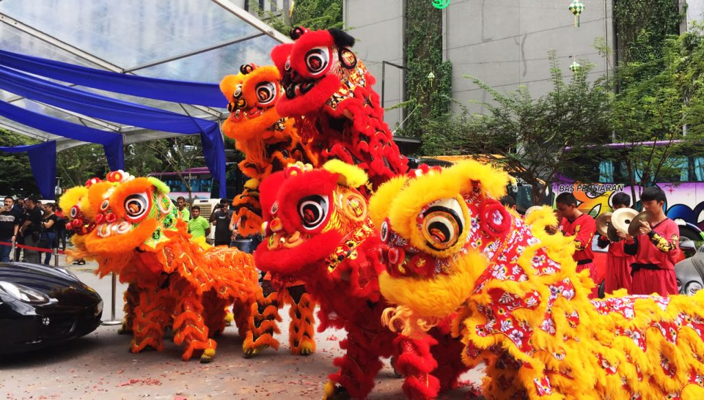 - Lion dance troupes weaving through the street
