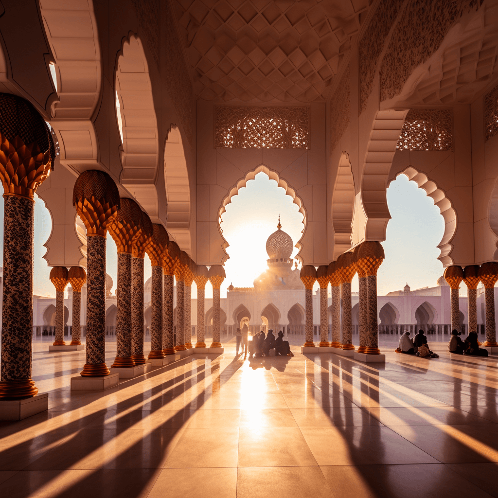 Adding to its splendour, the main arch and mihrab are adorned with Makrana marble imported from Agra, Jaipur, and Makrana. These white marbles, hand-carved by Indian artisans, feature authentic and intricate motifs enhanced by the shimmering presence of precious stones such as lapis lazuli, black onyx, malachite, red and golden jasper, mother of pearl, and tiger’s eye.