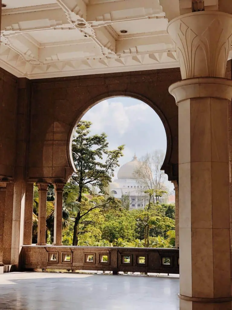 Surrounded by lush greenery, Masjid Wilayah (Federal Territory Mosque) stands as one of Malaysia’s largest and most magnificent mosques, envisioned as a “mosque in a garden.”