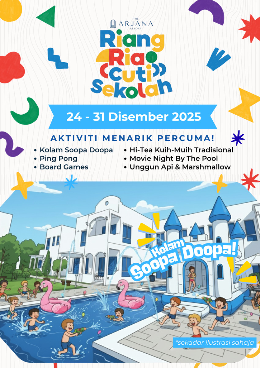 #TheArjanaResort #CutiSekolah #PercutianKeluarga #RiangRia #Disember2025 #FamilyFun #Percuma #AktivitiKanakKanak #HiTea #UnggunApi