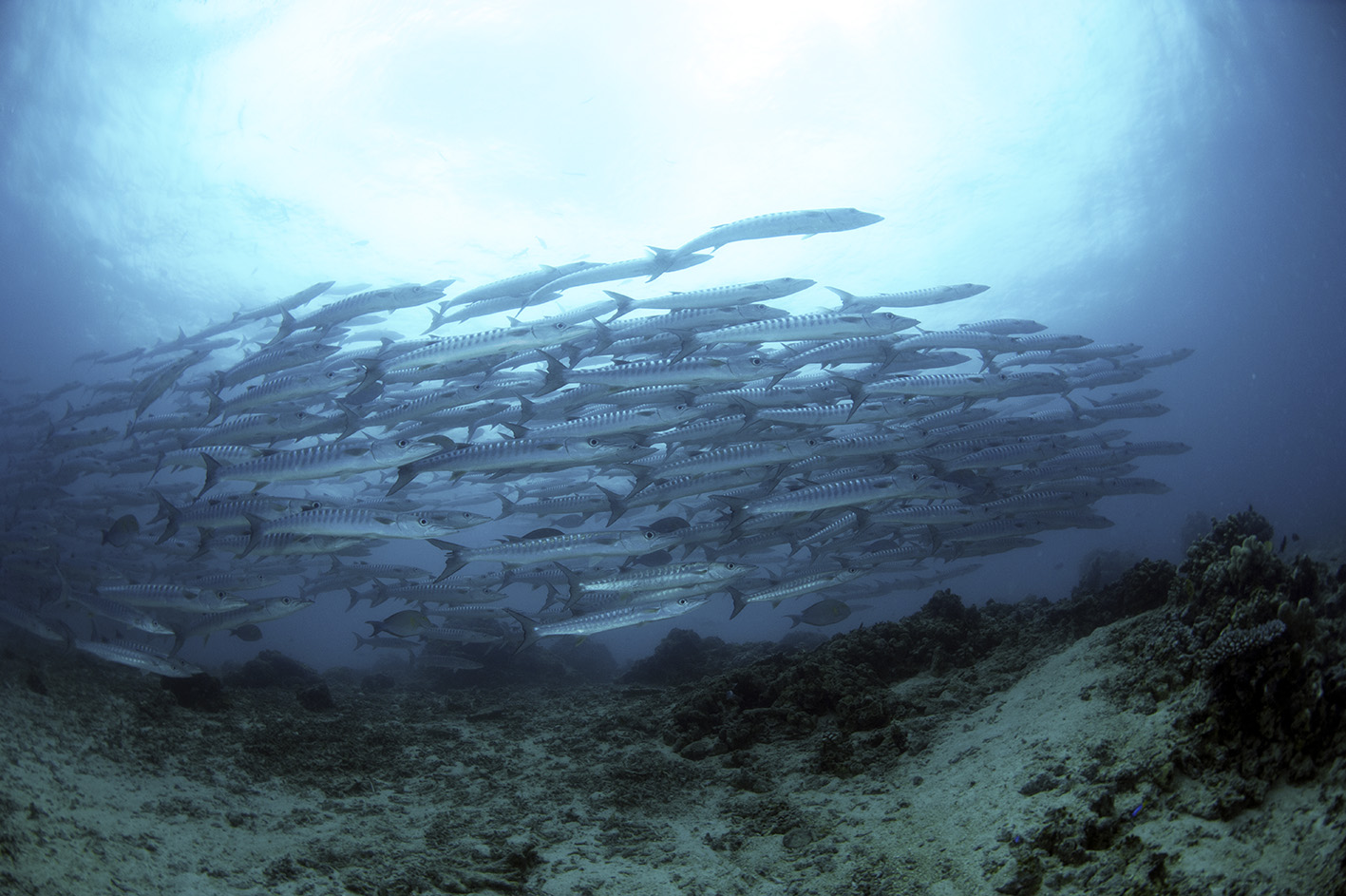 Often named among the world’s top dive sites, Sipadan is nothing short of iconic. Rising from a 600-metre-deep seabed off the coast of Sabah, this protected marine paradise is alive with movement: schools of barracuda form spiralling “tornadoes,” giant green turtles glide effortlessly, and shimmering walls of reef fish surround you. Strict visitor limits ensure the reef remains pristine, making every dive feel exclusive and untouched.