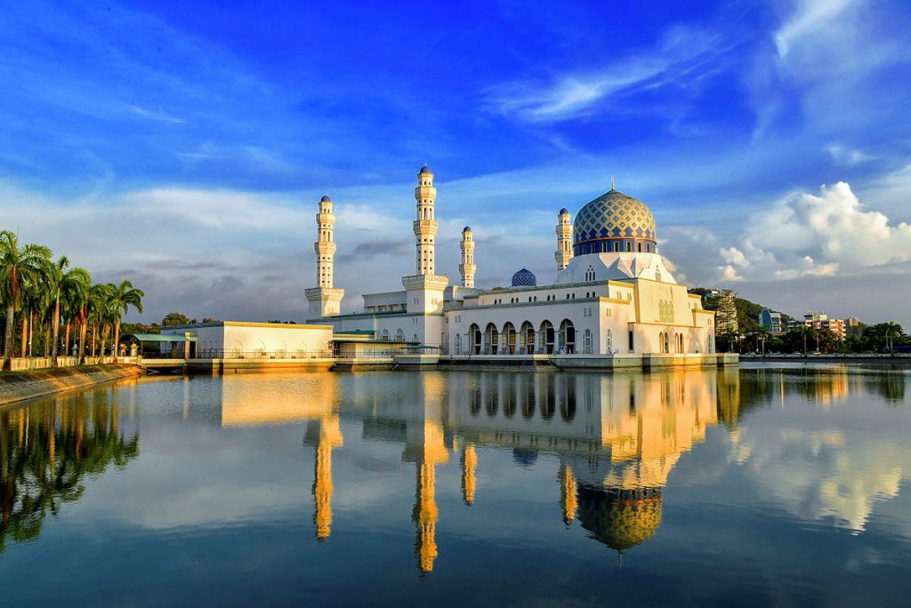 Gracefully poised over a man-made lagoon, the Kota Kinabalu City Mosque, or Masjid Terapung (Floating Mosque), stands as one of Sabah’s most iconic landmarks. Inspired by the magnificent Al-Nabawi Mosque in Medina, this architectural gem captures the essence of peace and spiritual beauty. Its gleaming white façade, golden domes, and tranquil reflections over the water create a breathtaking sight — especially under the glow of the full moon.