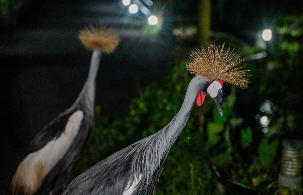 Some friendly birds, like the grey-crowned crane, even stroll freely along the paths, adding a delightful surprise to the night experience.
