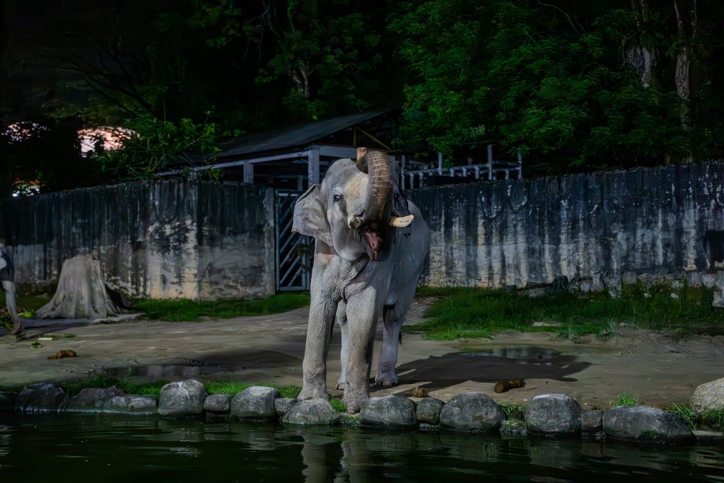 During the day, the zoo’s open-air concept allows visitors to enjoy naturalistic habitats designed to resemble the animals’ real environments. Wander through five key exhibits — the Malaysian Rainforest Experience, Lowland Forest, Riverine Forest, African Savanna, and the Elephants of the Perak River — and get close-up views of majestic creatures like Malayan tigers, African lions, rhinos, giraffes, orangutans, hippos, and more. A 2.5-kilometre walking trail weaves through these habitats, offering a relaxed, scenic journey through the zoo’s lush surroundings.